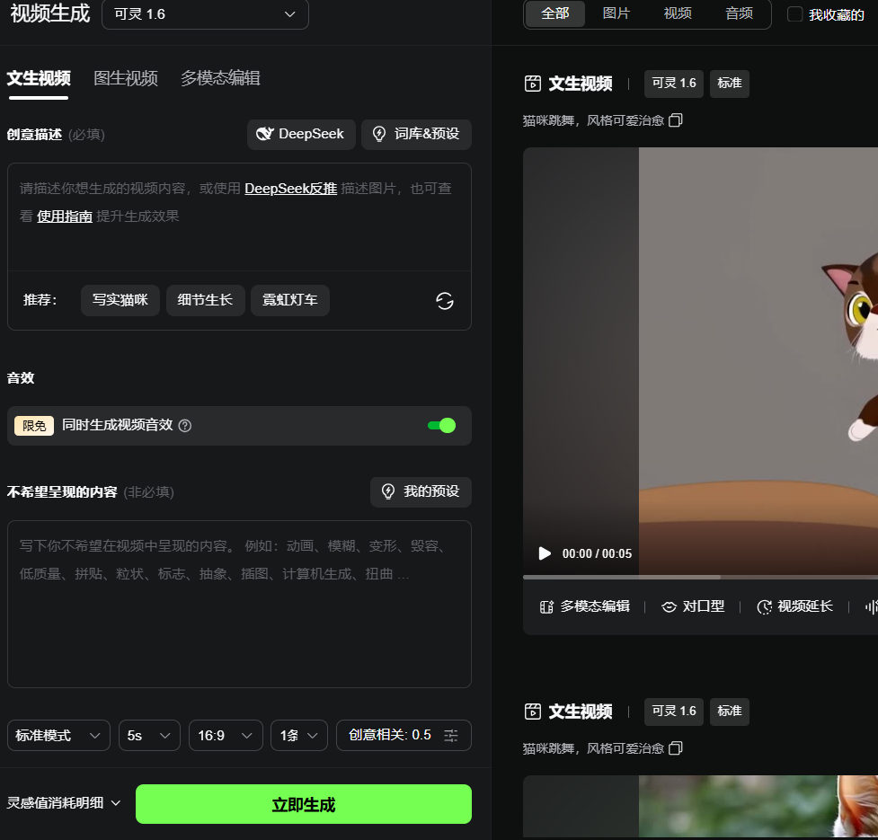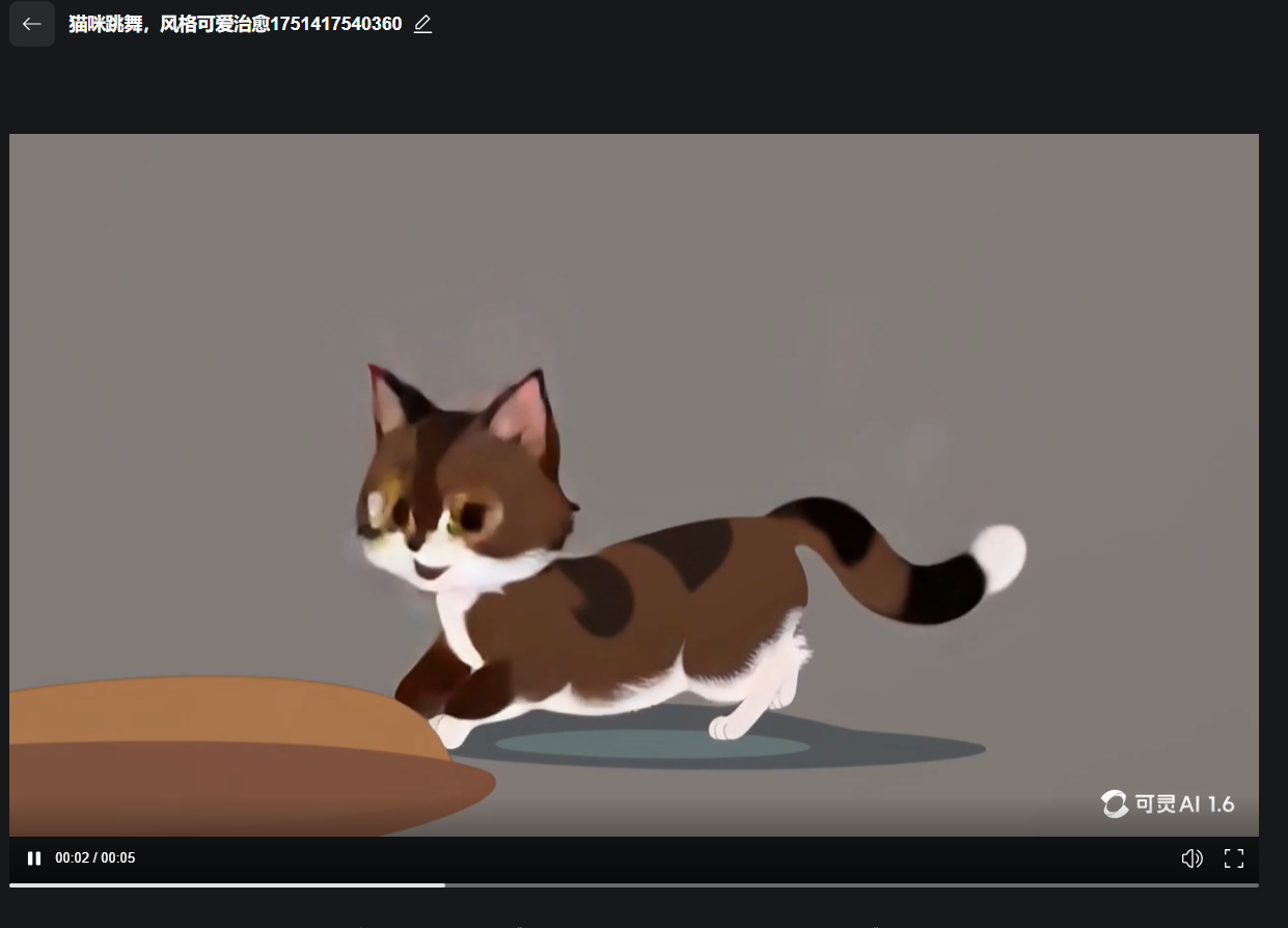 比如 输入“猫咪跳舞,风格可爱治愈”,用这些简单主题确定创作方向。