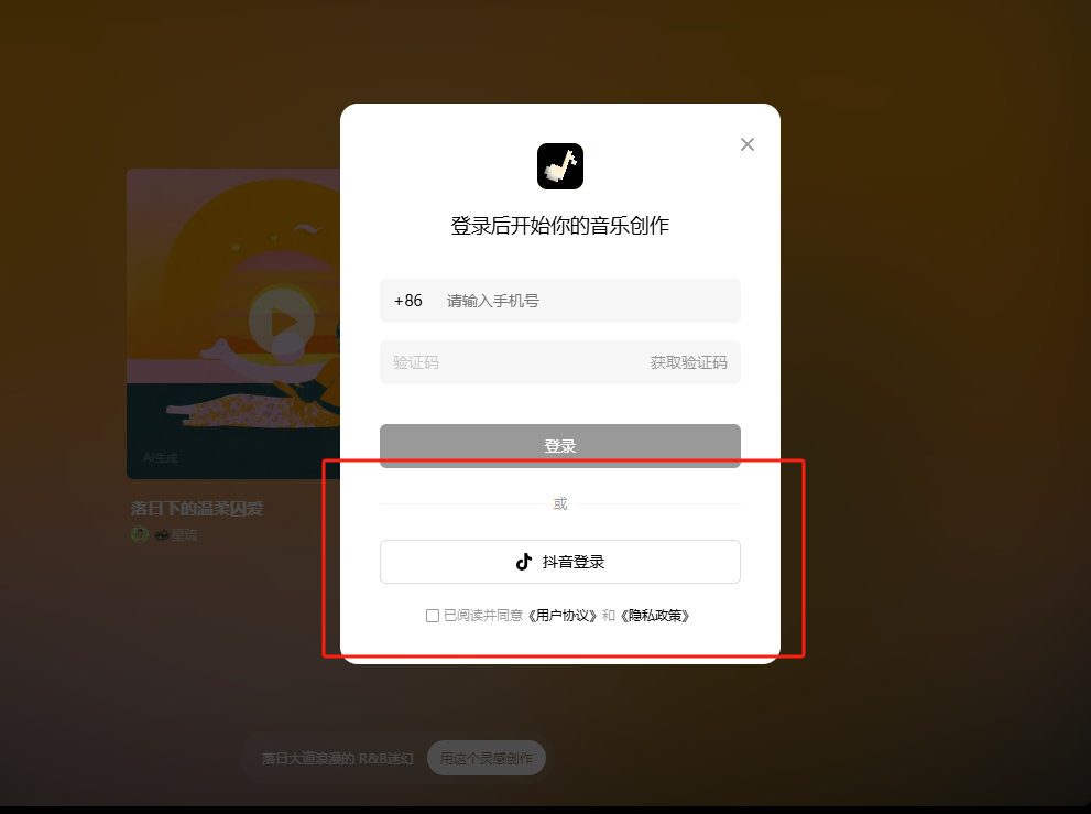 访问海绵音乐官网,使用手机号或者抖音账号账号扫码注册账号并登录。