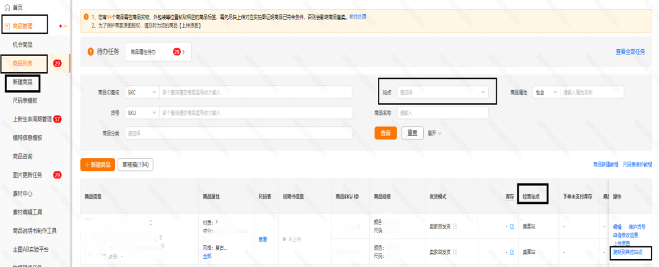 (1)入口:卖家中心-商品管理-商品列表-库存;