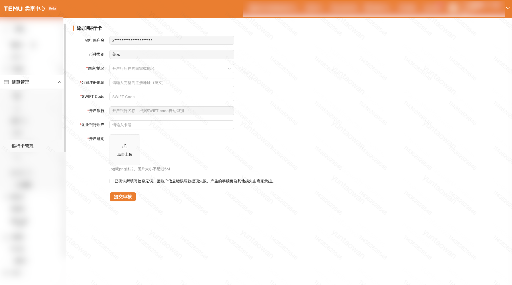 在【结算管理-银行卡管理】页面,您可以绑定新的银行卡了。