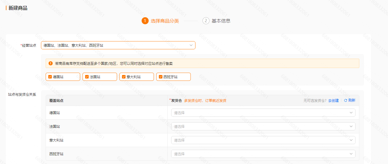 如您在德国有库存可以同时配送到法国、西班牙、意大利,您可以申请白名单同时选择这些站点进行销售,但须注意无法配送的站点要取消勾选。