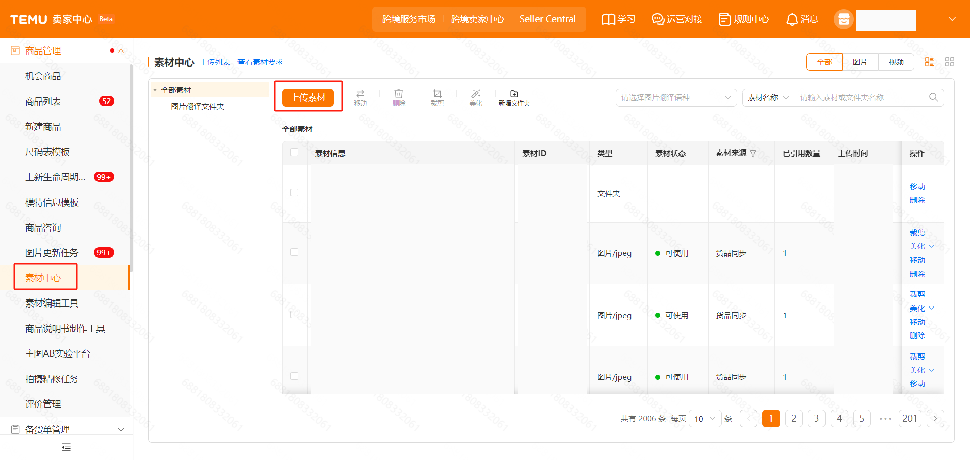 建议素材命名与商品货号、商品名称等内容相关,便于导出素材id和url后,可快速通过素材命名与商品货号、商品名称等匹配到excel发布商品的模板中