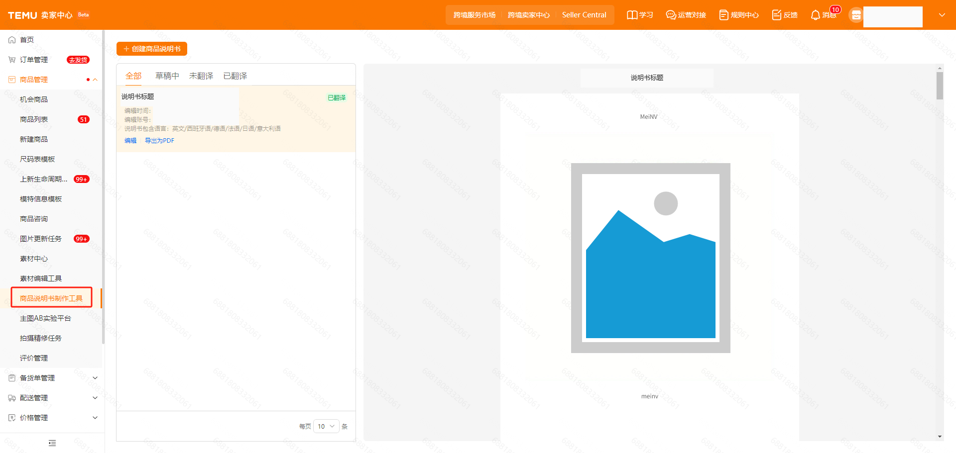 您可以在卖家中心—商品管理—商品说明书制作工具维护说明书素材