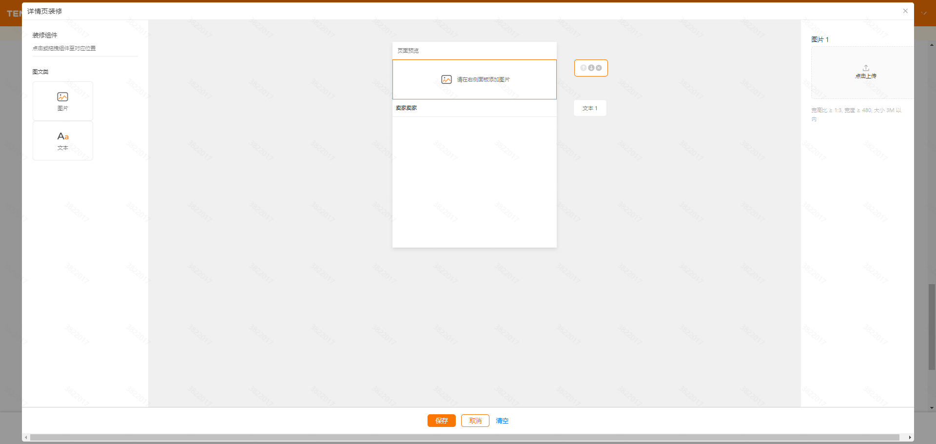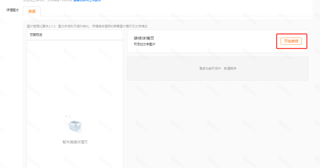 点击开始装修,即可维护详情图文,支持上传图片和文字维护
