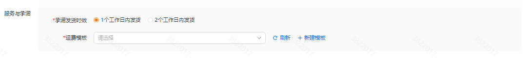 填写完商品信息后,您需要选择商品对应运费模板,若当前无可用运费模板,请点击【新建模板】去创建