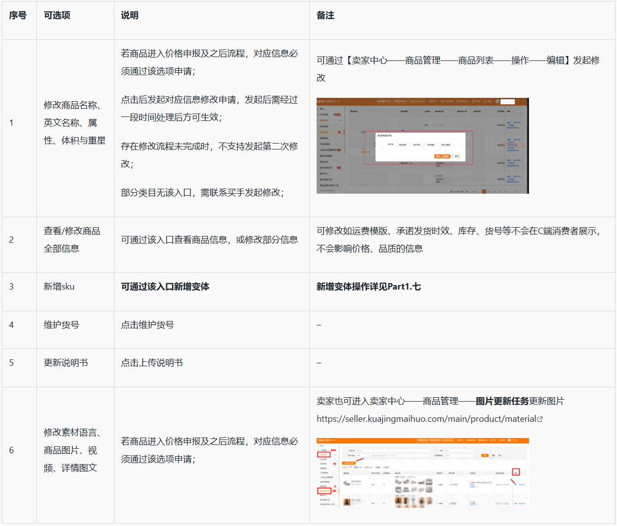 商品发布完成后,商家可能存在修改诉求,但当商品处于不同的上新流程中,将可能会收到对应的编辑限制,请根据需要修改的内容选择对应修改入口;
