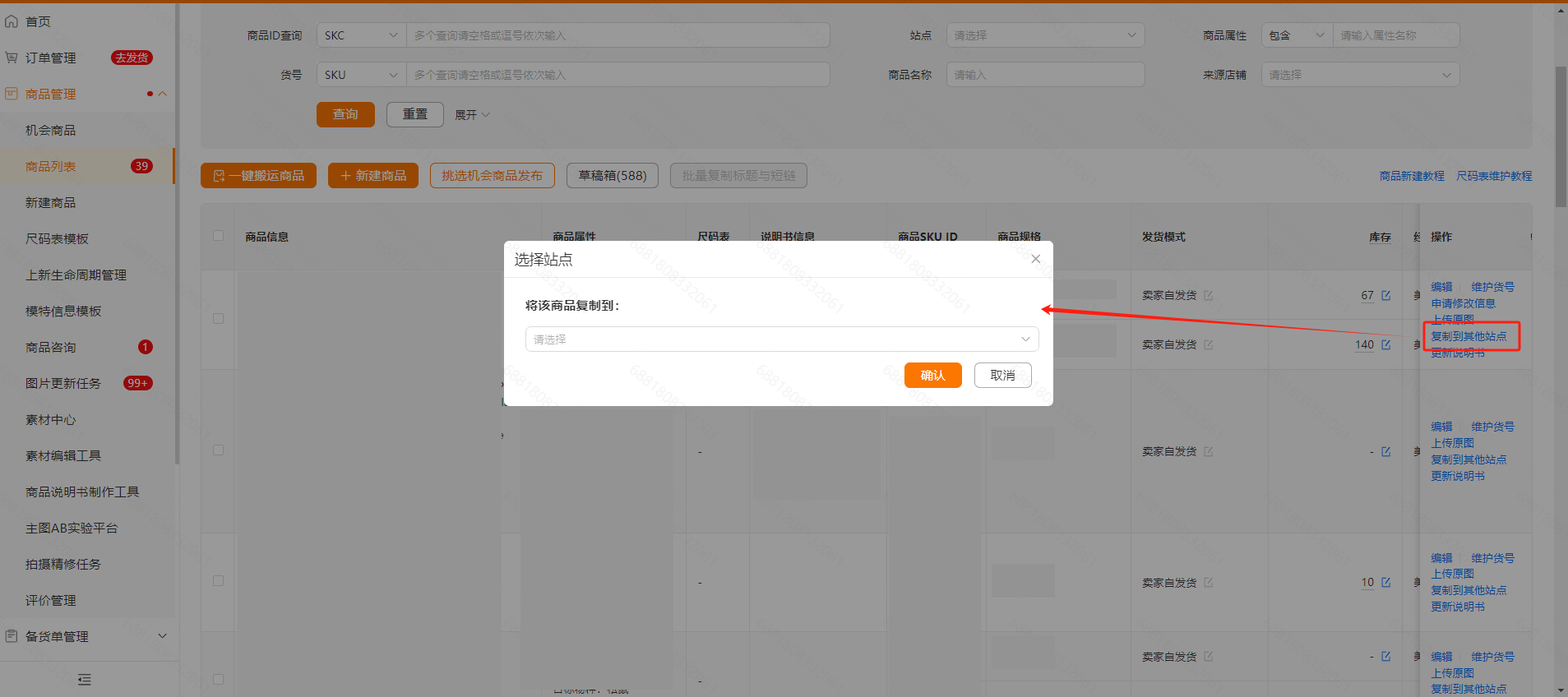 卖家中心——商品管理——商品列表——操作——复制到其他站点