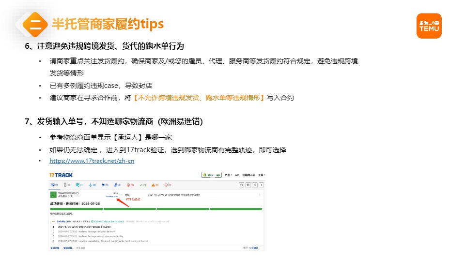 首页 知识体系 正文 Temu半托管商家履约规则介绍 发布于TEMU知识体系 发布时间 :2025-5-30 20:48 阅读 :1分钟 版权提示:信息来自于互联网,不代表KJBase官方立场,内容仅供网友参考学习。如发现本站内容存在版权问题,烦请提供版权疑问、身份证明、版权证明、联系方式等发邮件至 kjbase@163.com ,我们将及时沟通与处理。如若转载请联系原出处