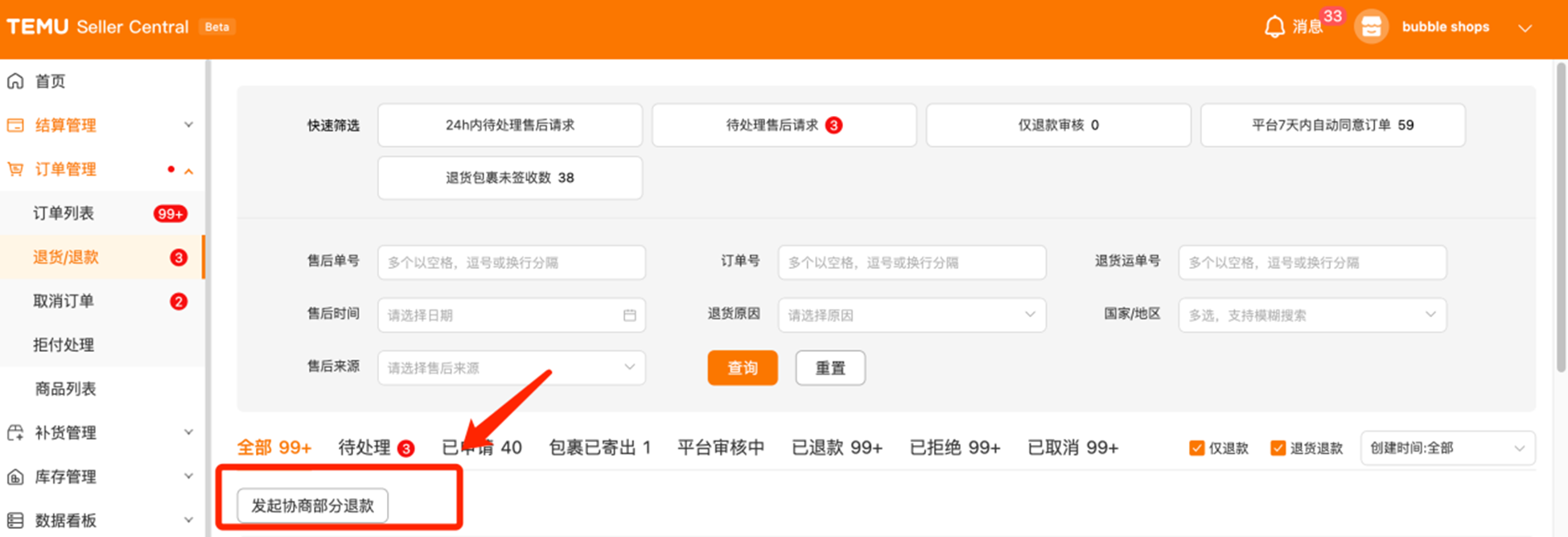 功能入口:美区/欧区卖家中心-订单管理-退货/退款