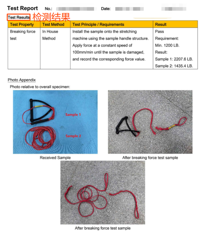 注: 检测报告中测试的“抗拉强度”至少要达到或超过产品属性中选择或商家宣传中的“抗拉强度”。