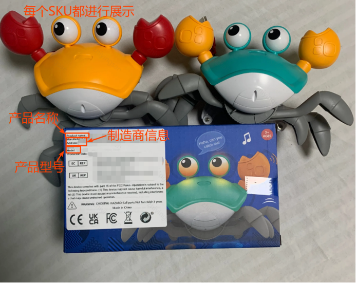 注意:每个SKU都需展现在实物图中,同时需展示详细的产品信息/标签。