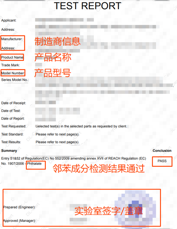 资质文件需为一份完整的检测报告,检测报告需要证明产品已通过邻苯二甲酸盐(phthalates)测试。