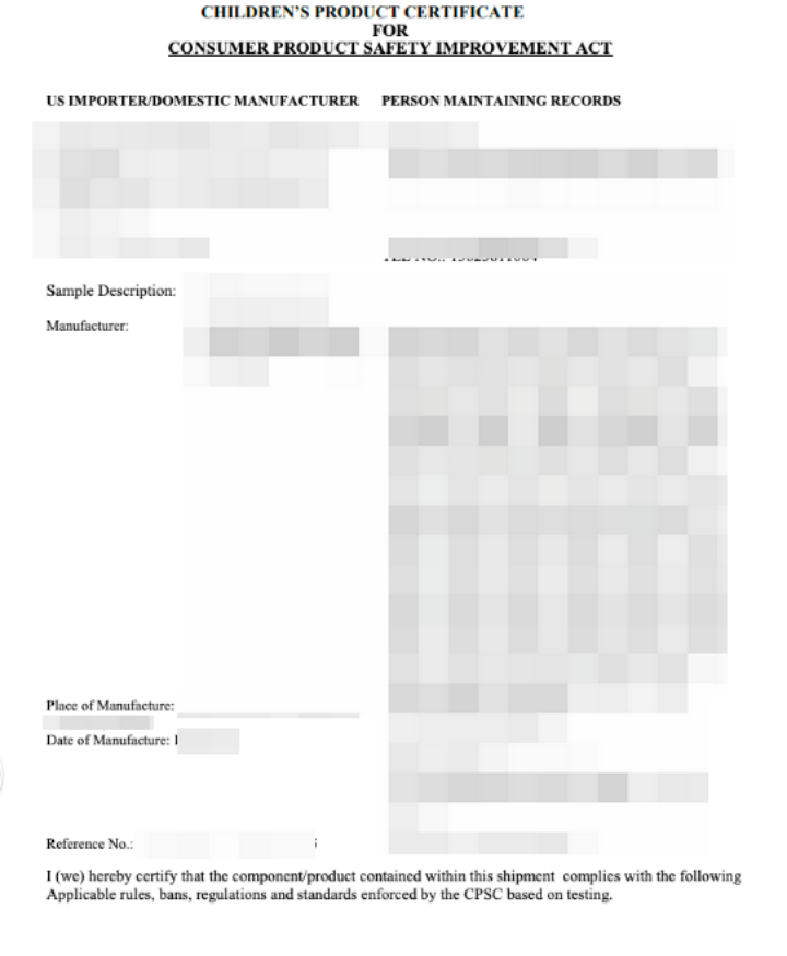 6、CPC资质证书缺少制造商/进口商信息