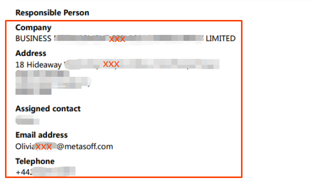 【问题】负责人信息主要包括名称、地址、邮箱。资质文件中负责人是BUSINESS XXX LIMITED,实拍图中负责人是ZTDT XXX LTD,两者不一致。此外,地址和邮箱也不一致。