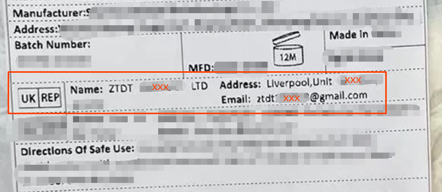 【建议】请商家明确英国负责人的真实信息,并保持资质文件、实拍图中展示的信息是一致的。