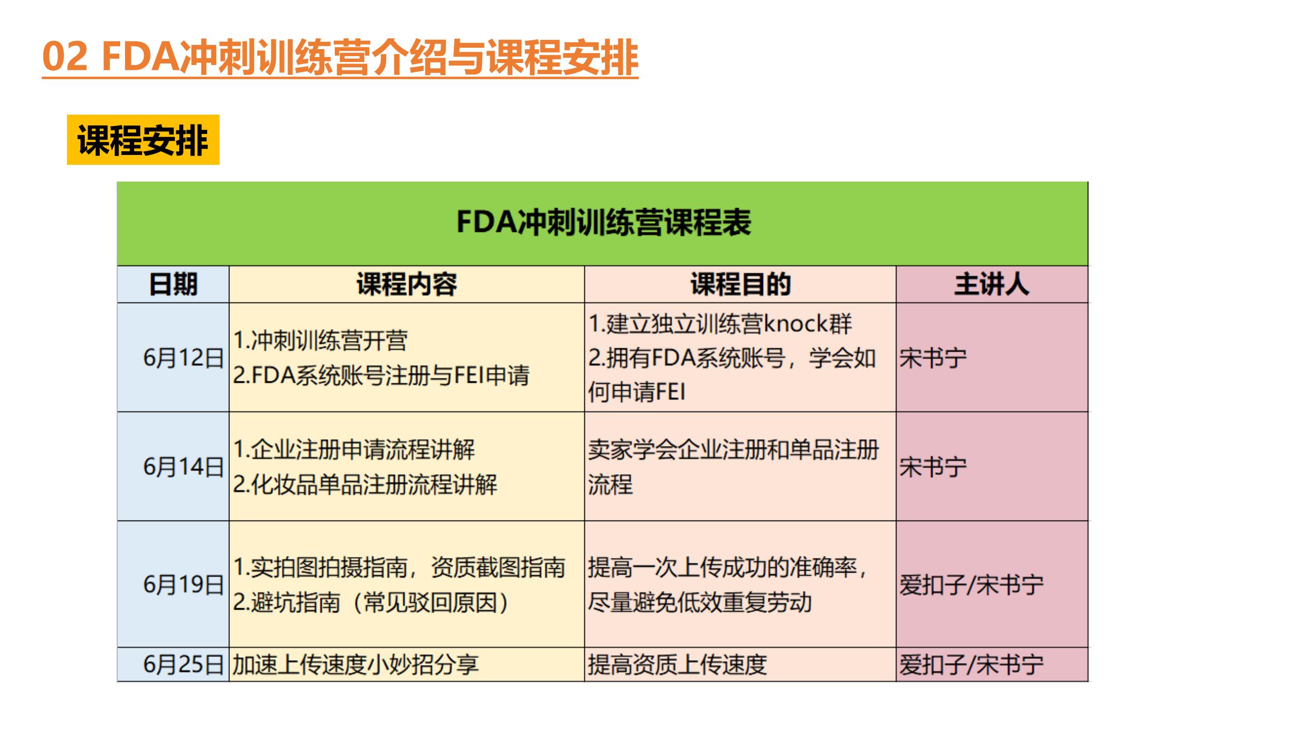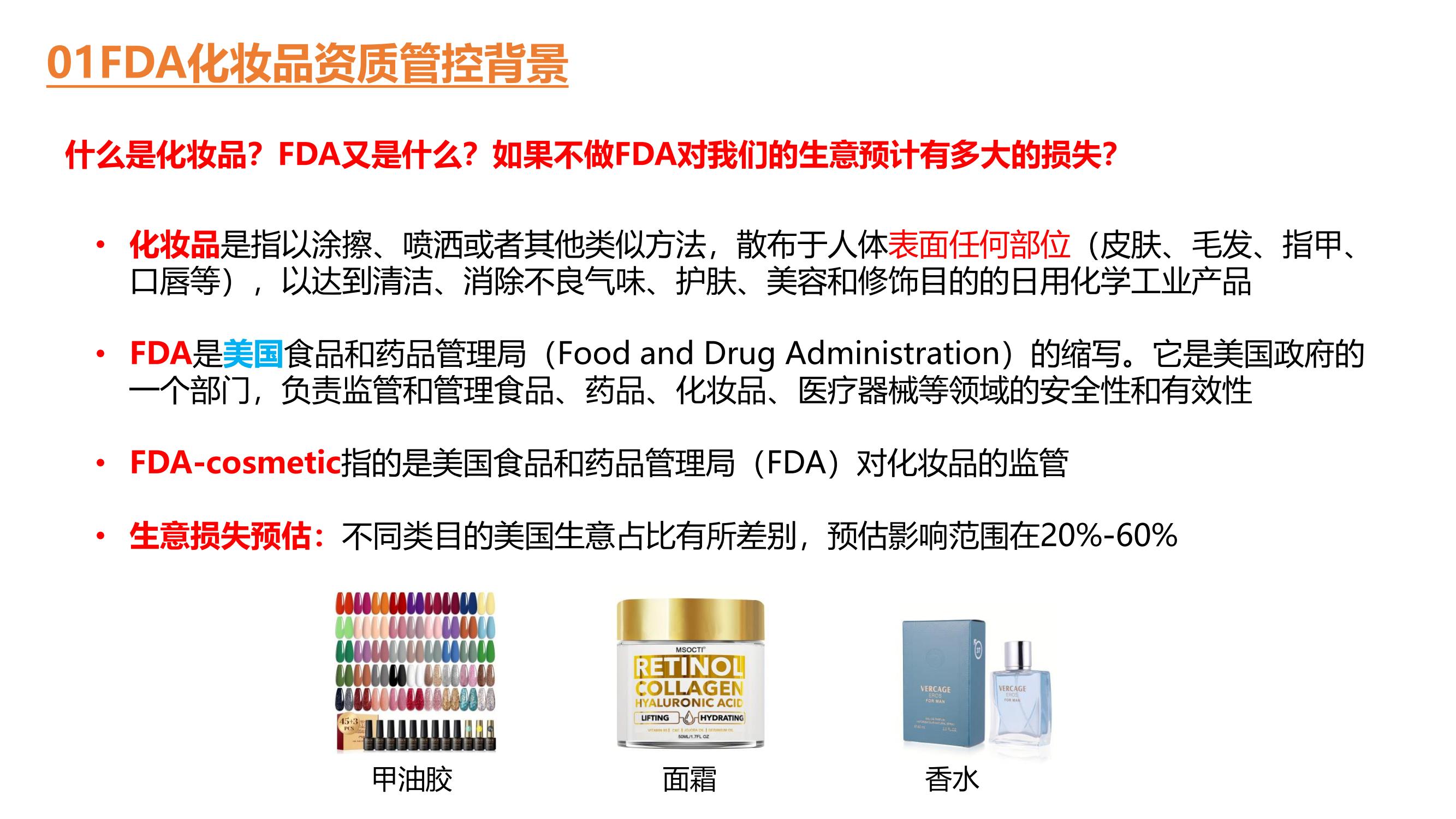 Temu 平台 FDA 账号申请及 FEI 码申请方法,包括 FDA 化妆品资质管控背景(如化妆品定义、FDA 职责、注册证明要求、管控执行时间及豁免情况)、FDA 冲刺训练营介绍(时间、价格、类目、目的、培训形式、资质奖励)与 ...