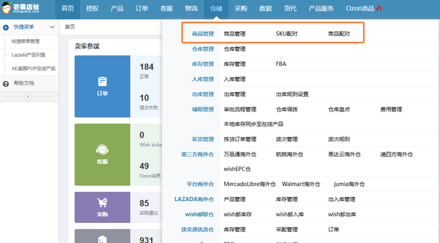 如果是多店铺运营,同一个产品填写了不同SKU,可以借助芒果店长ERP进行SKU匹配,以达成不同SKU指向同一商品,便于仓库产品出库及统计。