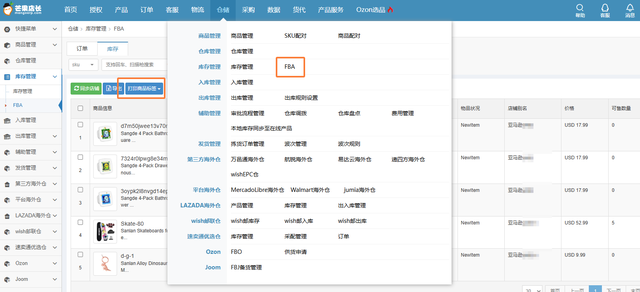 登入亚马逊卖家中心,点击“库存”选项,选择要发往FBA的产品。对于尚未在亚马逊上出售的产品,你需要先进行产品的创建。