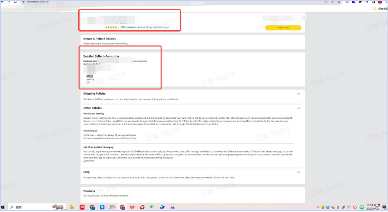 2.1 申请 TikTok shop 时其他电商平台 seller 主体页(和营业执照一致,如不一致请在营业执照处请提交申请店铺时所用关联证明),请确保截取到 seller name 和 店铺好评率