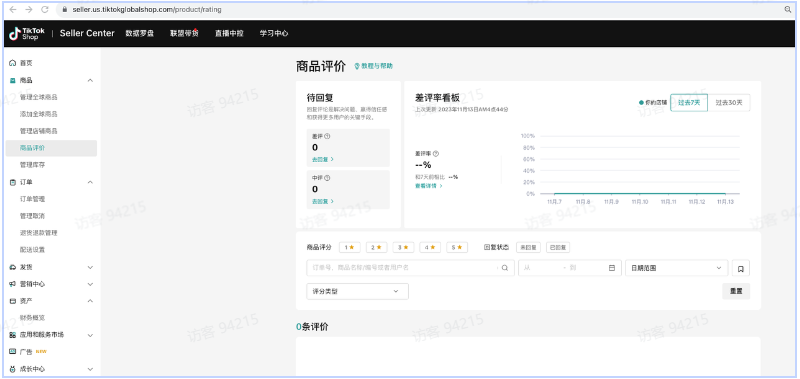 2.其他跨境平台后台截图,包含店铺评分、店铺流水、店铺好评率、商品好评率